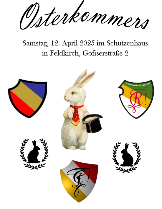 Im Feldkircher Schützenhaus stieg der gemeinsame Osterkommers von Sonnenberg Bludenz, Rhenania Lustenau und Clunia Feldkirch. Zahlreiche Bundes - und Kartellgeschwister folgten unserer Einladung und genossen einen schönen Abend unter Freunden.